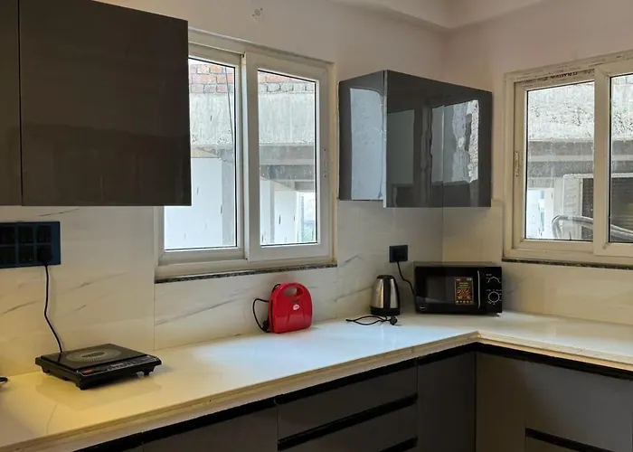 Een ingerichte keuken is ideaal voor het bereiden van thuis gekookte maaltijden. Purani Chungi bushalte is in de buurt van Famjam Onyx Oasis 4Bhk Apartment gelegen.